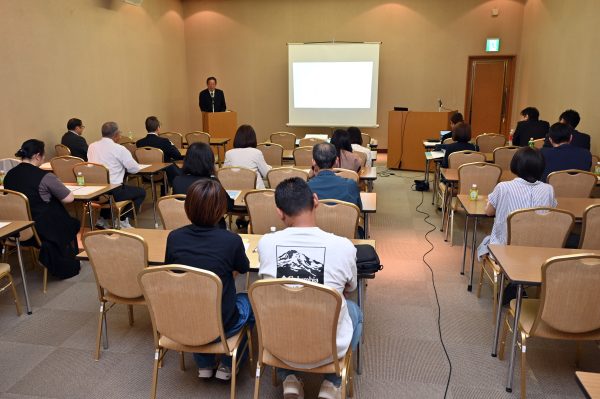 東海大学後援会では5月から6月にかけて、「新入生(在学生)保護者説明会」を行いました。この説明会は保護者の皆さまに後援会とその活動への理解と参加を呼びかけるとともに、大学の学修やキャリア支援の現状、学生生活への理解を深めていただくことを目的としています。今回は国内50地区で実施し、教職員による「大学の近況報告」のほか、教職員や役員を囲んでのグループ交流会、各地区独自のプログラムを行いました。ここでは、東京都、岡山県、青森県の説明会の様子を紹介します。